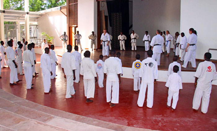 С большим энтузиазмом встречали российских спортсменов в Институте искусств, на базе которого прошли семинары в Багамойо. Большое количество участников заставило организаторов разделить танзанийских каратистов по возрасту: старшую группу тренировал Максим Дедик, молодежь взял на себя заслуженный тренер России Константин Белый, а детвора занималась с известным мастером Вадимом Дормидонтовым.