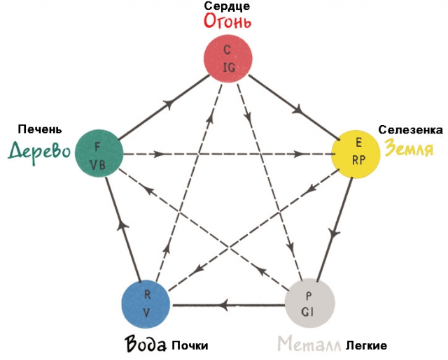 Интересующихся отсылаю к соответствующей литературе по китайской медицине и боевым искусствам. Известно, что «приемы» во внутренних стилях тоже могут быть «расписаны» по системе Пяти Элементов.