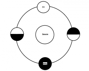 Интересны истоки возникновения системы У-син. На эту тему тоже существует специальная литература. Есть мнение, что первоначально схема выглядела вот так, и появилась она в результате наблюдений за сменой времен года, фаз луны и т.д.