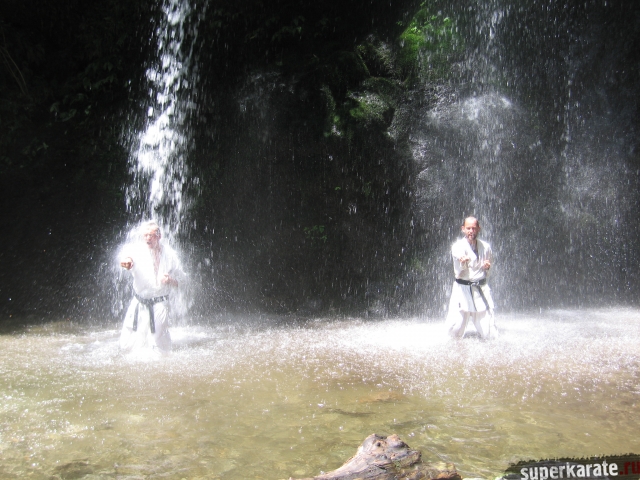 Именно поэтому не только Мас Ояма, но и другие мастера использовали подобную практику. Сейчас везде где только есть водопад или море, каратисты толпой забегают в воду, чтобы сделать пару эффектных снимков. На самом деле эта традиция является отражением практики "мисоги", пришедший в боевые искусства из Сюгэндо.