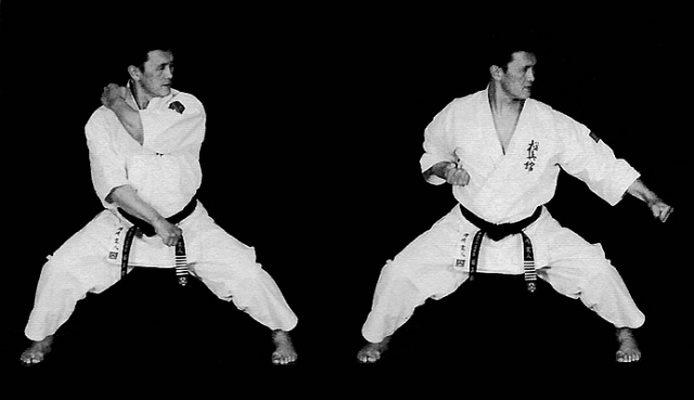 Зачем эта дзенкуцу-дачи и фактически движение на встречу удару? На мой взгляд, и тут все понятно. В данном случае делается акцент на понижение центра тяжести и таким образом усиление блока(блок выполняется телом, "животом" а не плечами) т.е. задача собрать живот, расслабить плечи, среагировать в очень нужный момент, уйти с линии атаки и ударить по атакующей конечности противника под нужным углом и в нужное место. Мне неоднократно приходилось слышать от людей, заслуживающих доверия, истории о том, как пожилые японские мастера одним блоком выводили из равновесия и фактически бросали на землю противника атакующего в формальной ситуации с помощью ой-цуки или маэ-гери. В данном случае речь идет об отличной демонстрации владения базовыми принципами почти, как в айкидо. Понятно, что в случае неожиданной атаки воспроизвести такую технику гораздо сложнее, а может быть и вовсе не возможно. Но, в данном случае мы говорим о подходе к обучению, свойственном именно боевому искусству, а не просто рукопашному ремеслу.
