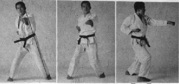 Именно этот вариант зафиксирован в книгах мастера, где показано явное перемещение веса с ноги на ногу и наклон корпуса в сторону удара. Такой вариант сильно отличает кекушин того времени от традиционного карате. Достаточно сравнить эти фотографии, чтобы убедиться в этом.