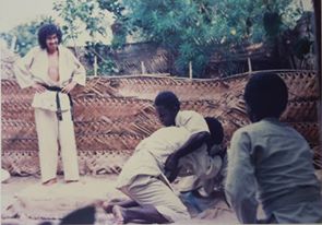 Когда мы с женой приехали на Занзибар, мы поселились в этой самой квартире, где и живем до сих пор. Однажды, просто постучали в нашу дверь, я открыл и увидел человек 10. Собравшиеся спросили меня не мог ли я преподавать какое-то боевое искусство, может быть карате, дзюдо или кнуфу? Мне было 23 года. Из всей собравшейся компании только один был моложе меня... Так начались наши тренировки. Мы тренировались просто на пляже, в районе, где сейчас расположен отель Protea. В то время там был просто ферма по выращиванию касавы и ничего больше. Мы делали самые простые упражнения, т.к. ни у кого не было дзюдоги (кроме меня). Месяца два спустя мы поменяли место тренирвок, начали заниматься на поляне в лесу, так посоветовали мои ученики. Как раз в это время я получил 6 дзюдоги из Японии. Я не понимал, почему мы ушли тренироваться с пляжа в лес, но ребята заверили меня, что им просто не нравится, что слишком много людей наблюдают за нами. Спустя два или три месяца на очередной тренировке появилась криминальная полиция, которая запретила нам тренироваться. Я не мог поверить тому, что я слышу, я смеялся и объяснял им, что дзюдо – это олимпийский вид спорта. Они сказали, что знают об этом, но на Занзибаре занятия запрещены! Я выяснил в других инстанциях, что действительно есть такой закон, запрещающий занятия любыми боевыми искусствами на острове. Я был очень удивлен, т.к. в это же самое время в Танзании уже существовало дзюдо, был клуб в Дар-эс-Салме, где я бывал несколько раз. Я получил предписание покинуть Занзибар в течении 72 часов.